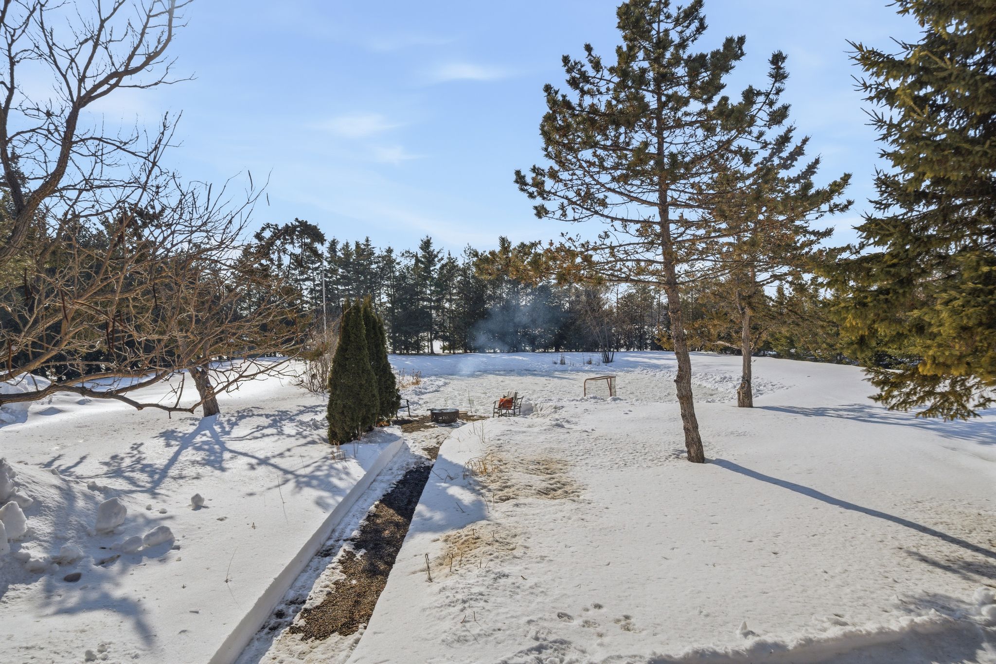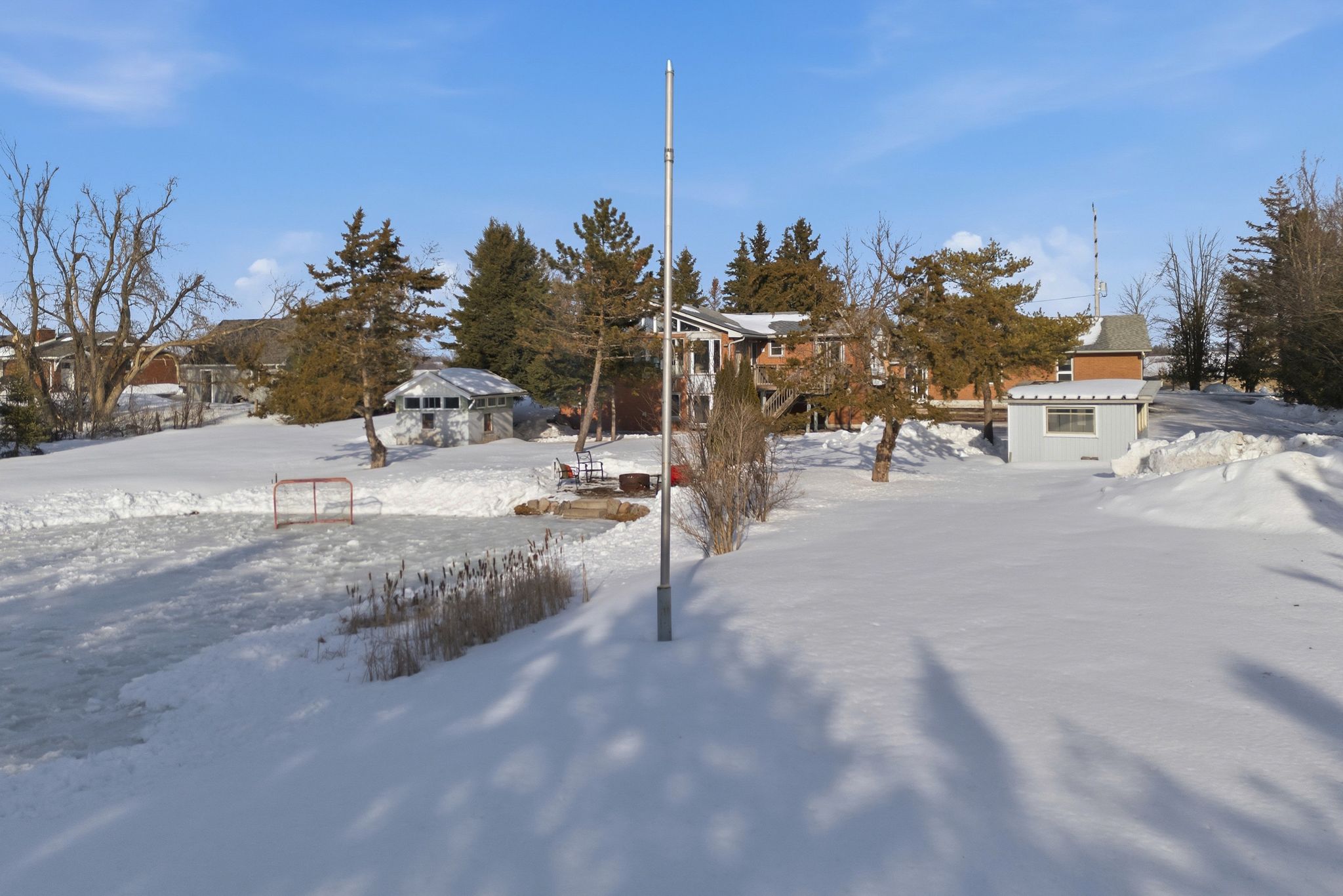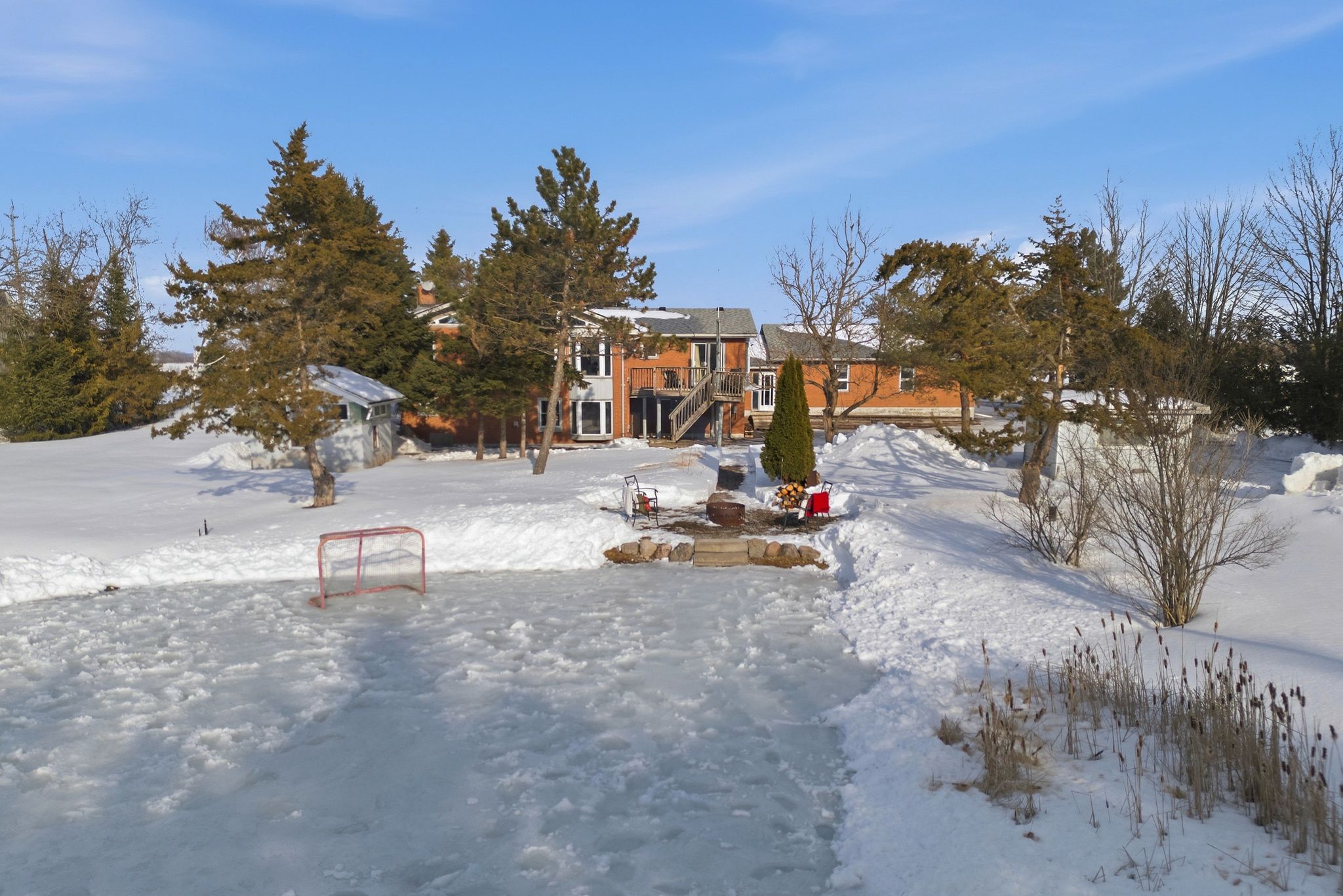 Outdoors is where this property truly shines. The impressive +/- 70-foot diameter pond (approximately 8 feet deep) is stocked with beautiful Koi fish, creating a tranquil backyard focal point in the warmer months — and transforming into your very own private pond hockey rink in the winter. It’s the ultimate four-season feature.