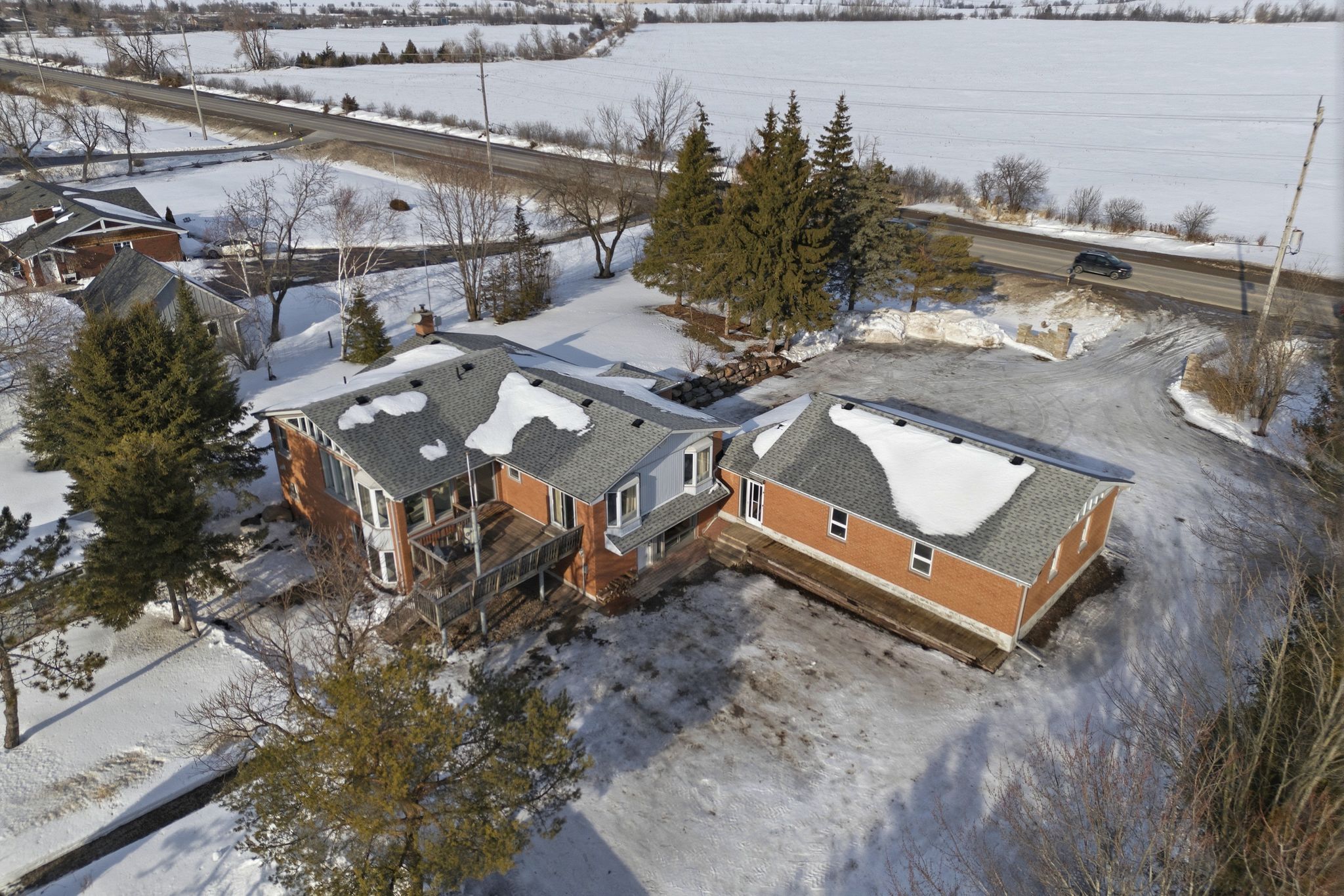 Tucked just minutes from town on a paved road, this beautifully maintained brick bungalow offers the perfect blend of rural privacy and everyday convenience. Privately set on a well-treed lot with loads of parking, this property delivers space, flexibility, and lifestyle all in one.