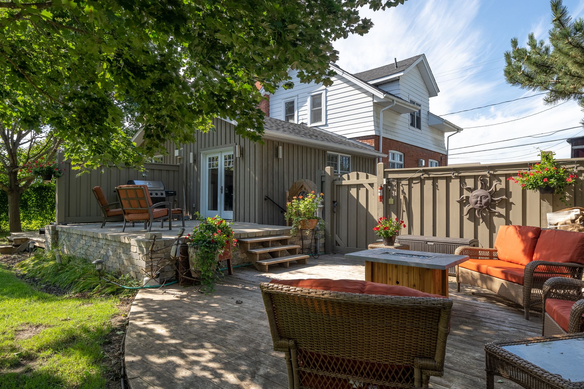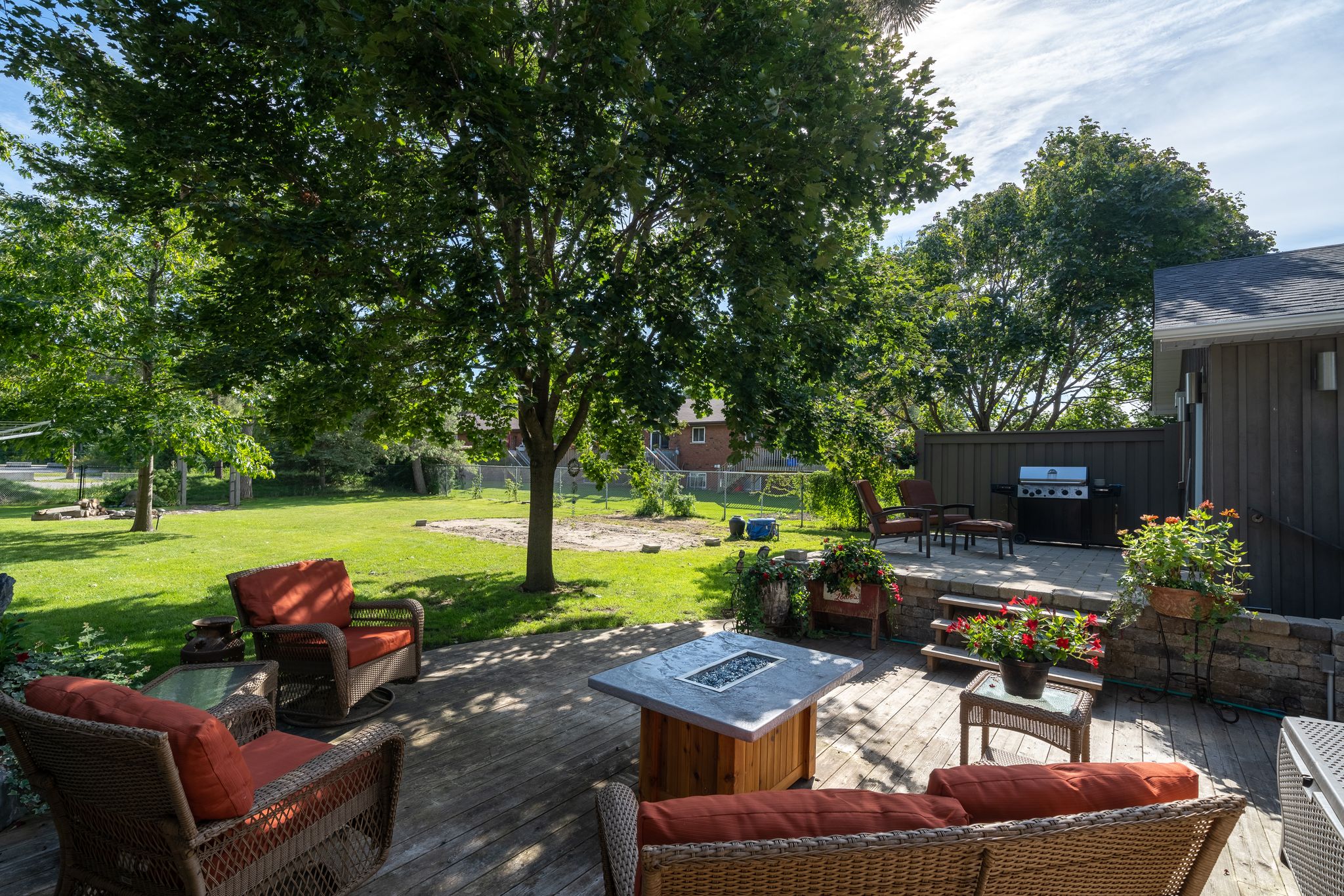exterior features: Fully fenced, Deck(s), Landscaped, Patio, Walk out
