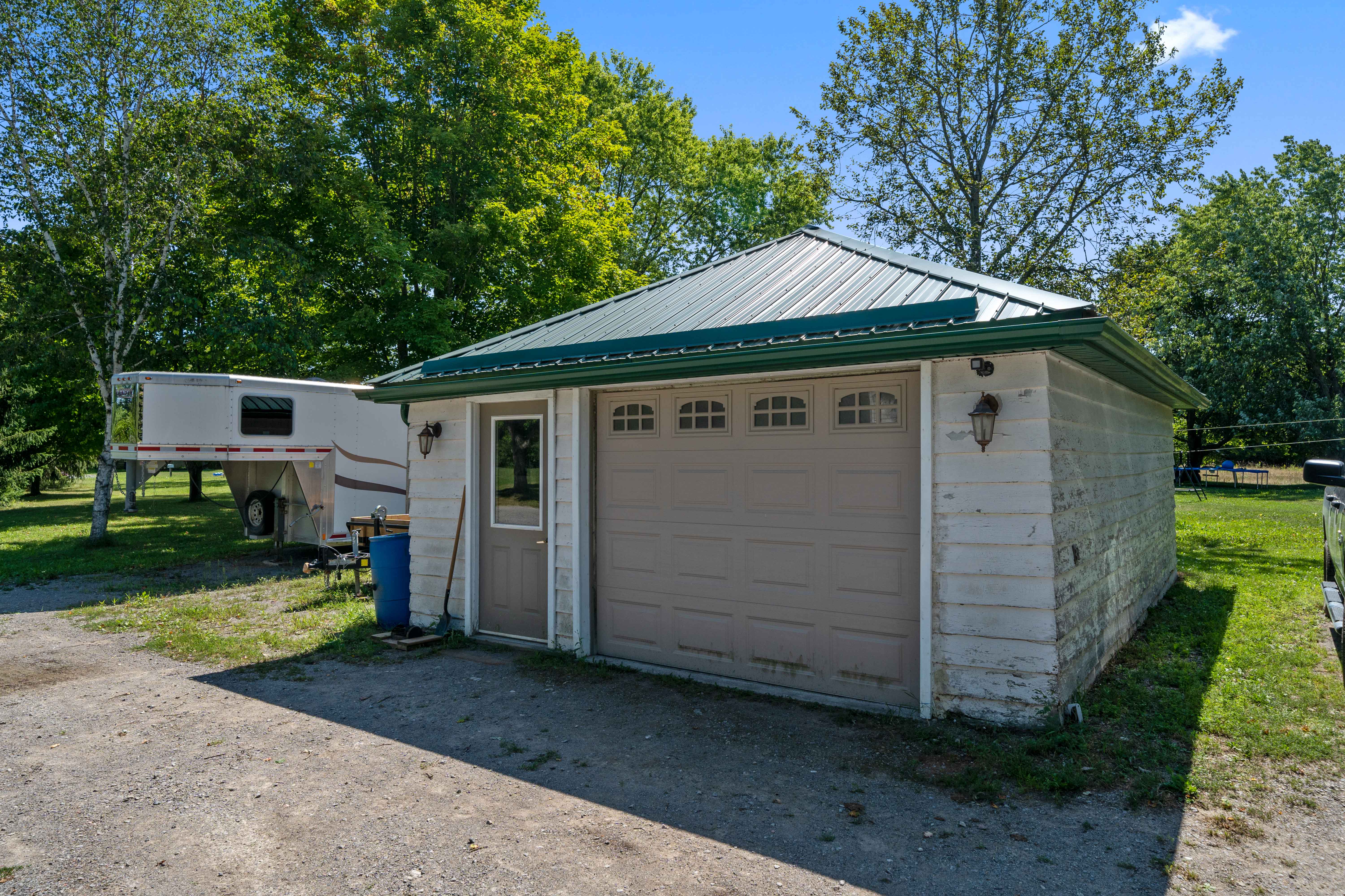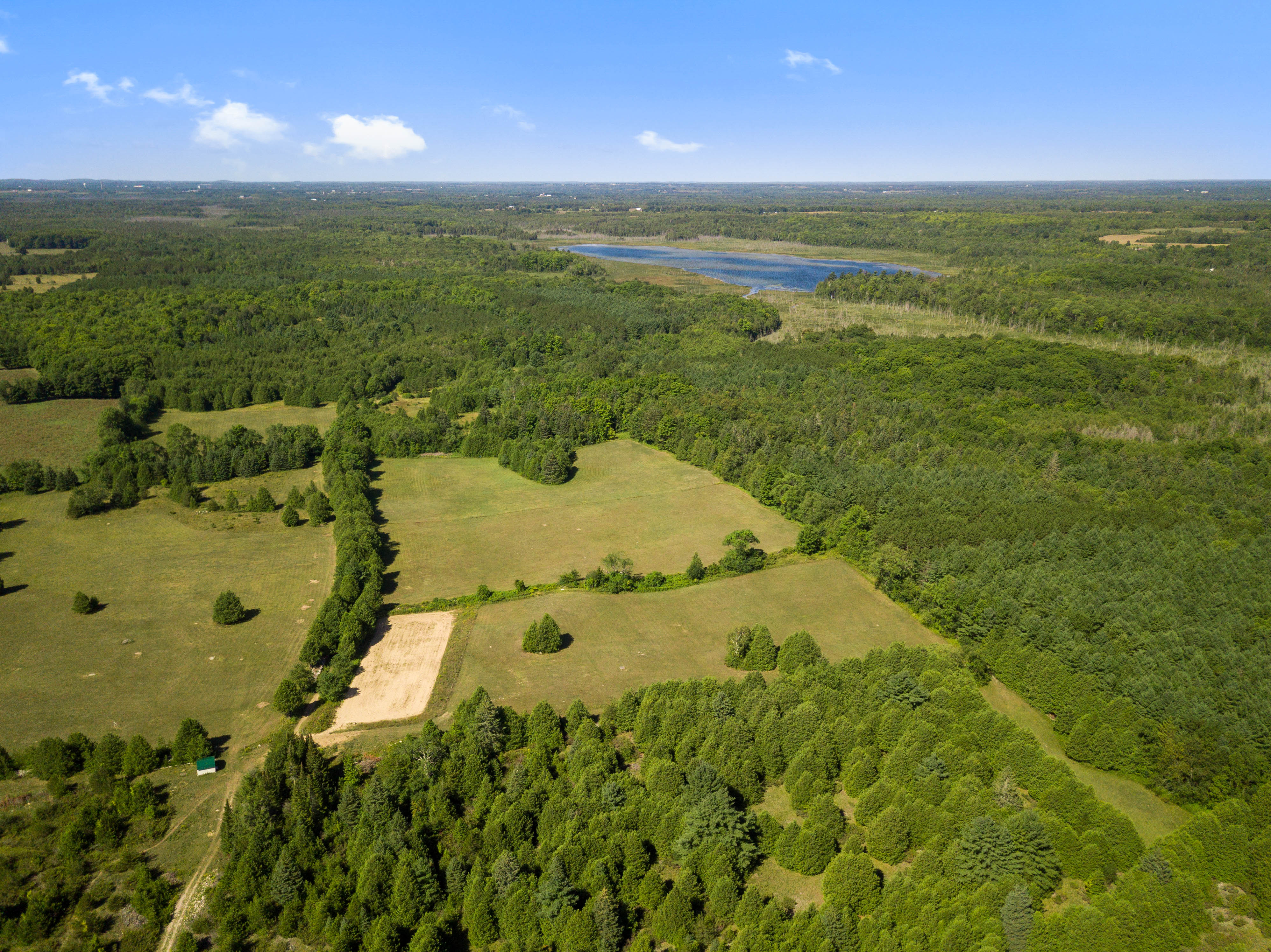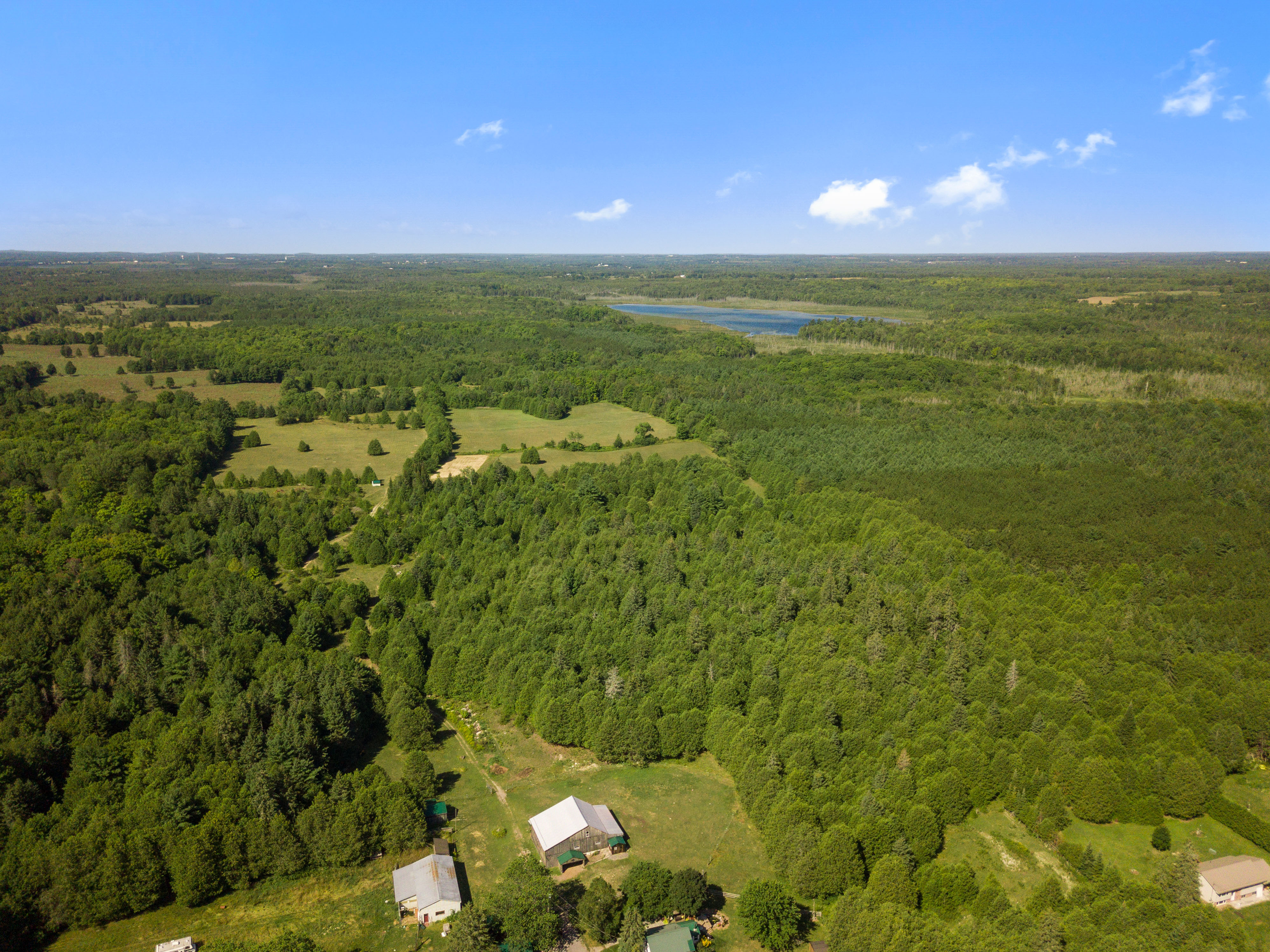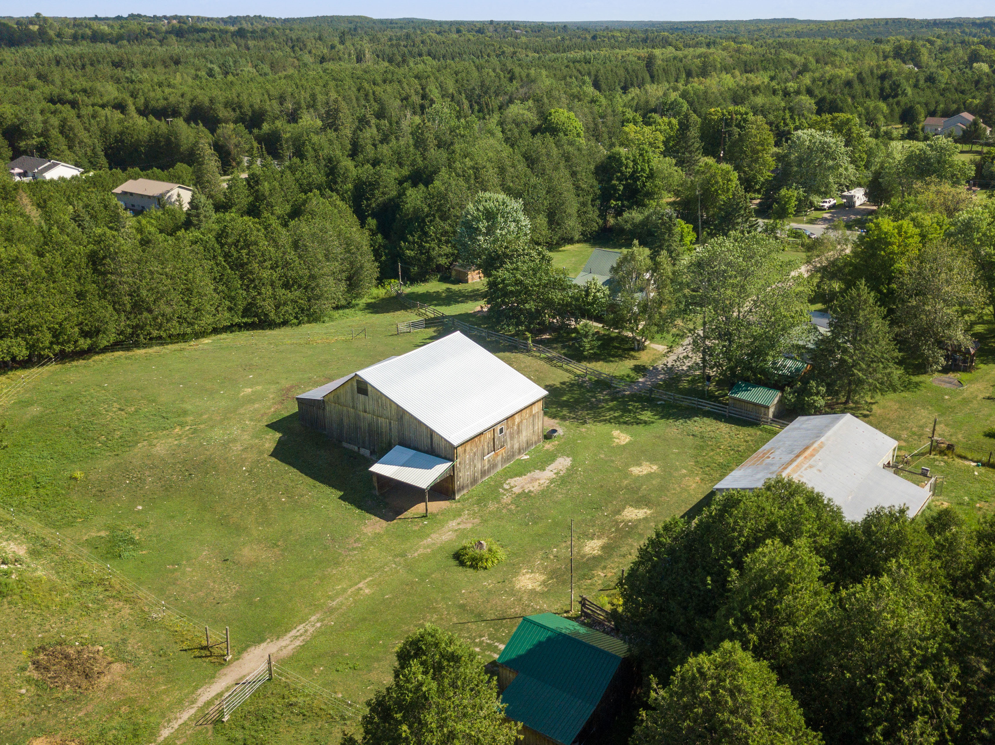 Currently set up for horses, the 4 stall barn has been lovingly maintained and upgraded to ensure longevity and usability! Indoor feed storage, heated tack room, implement storage as well as run in lean-to space for the animals!
