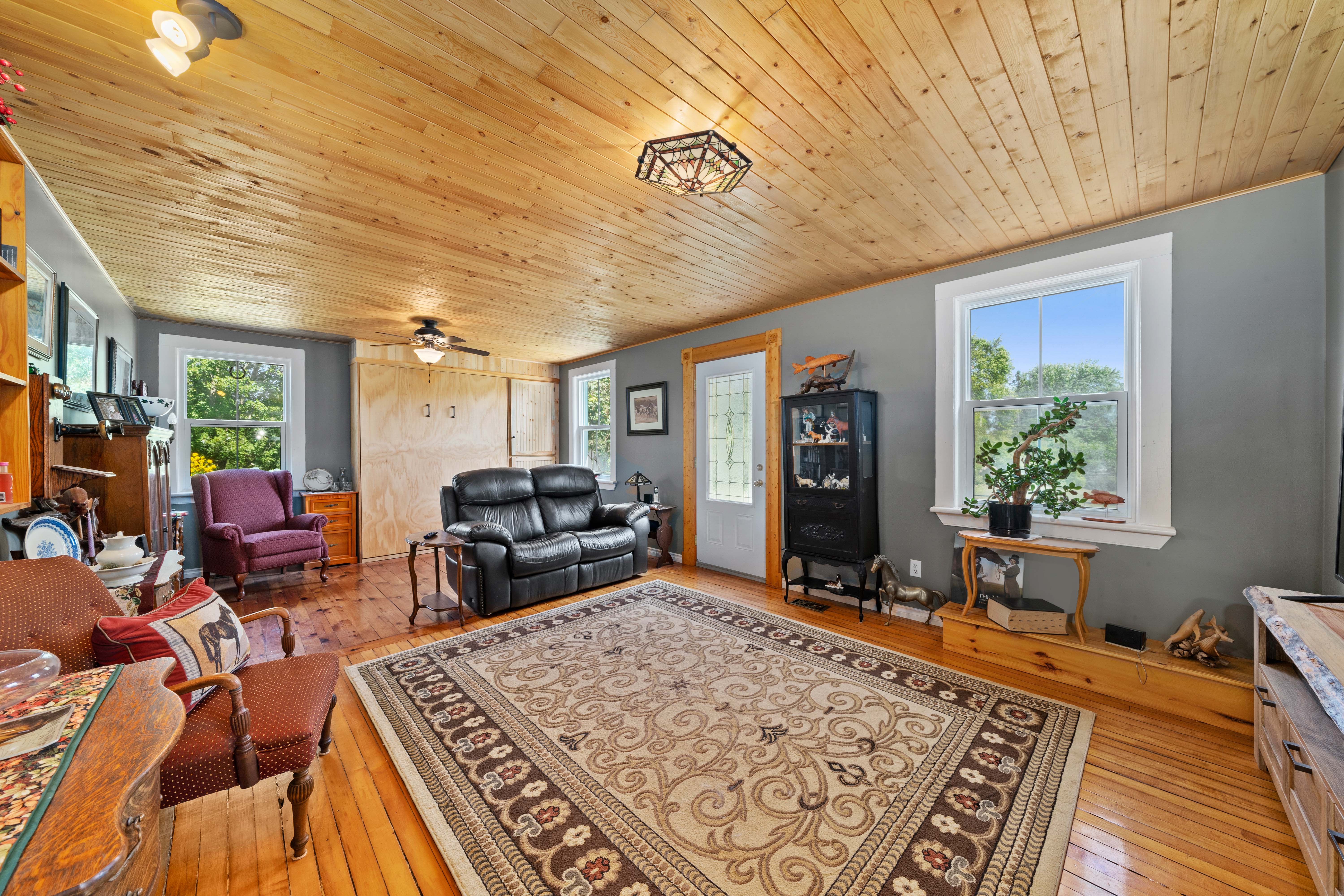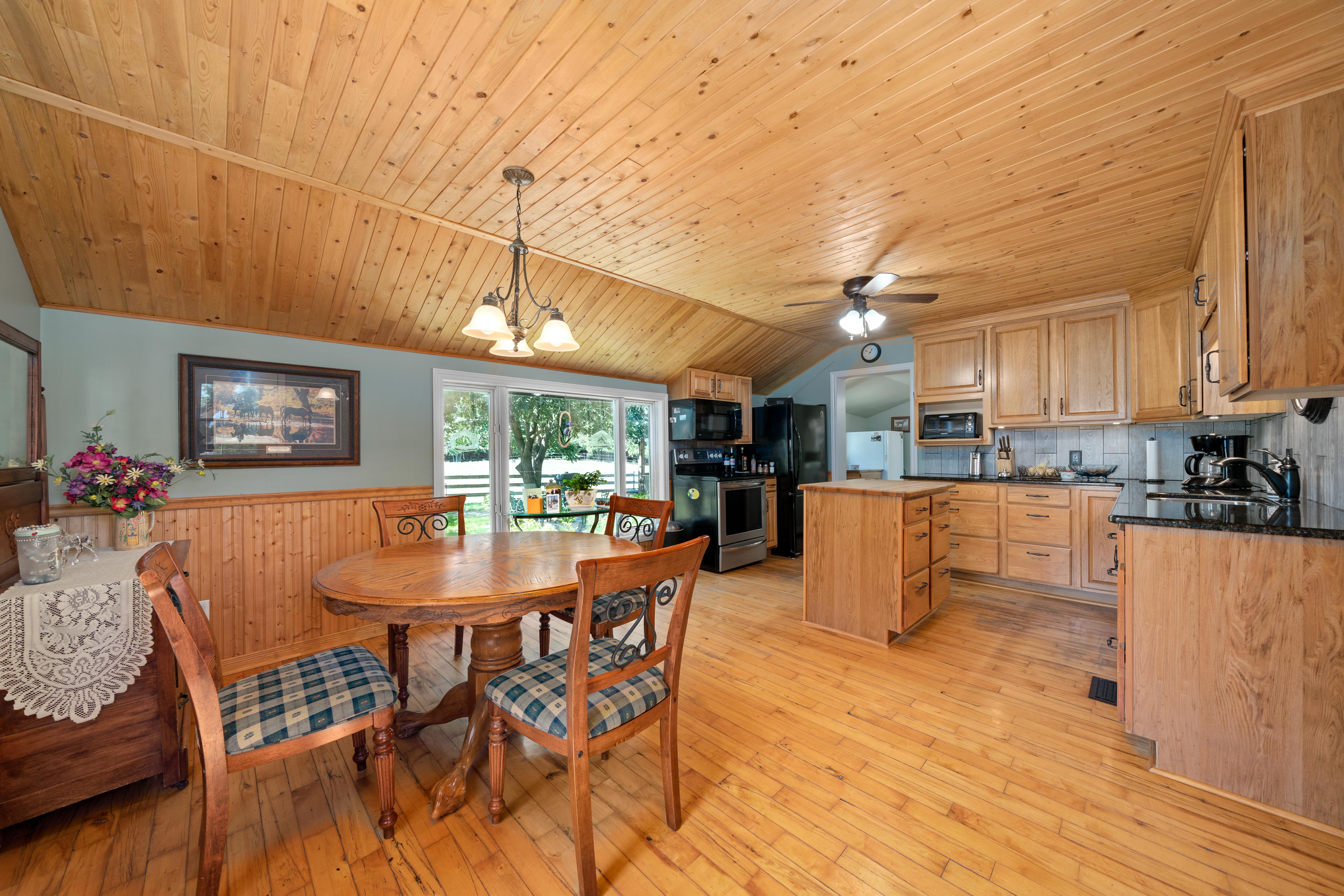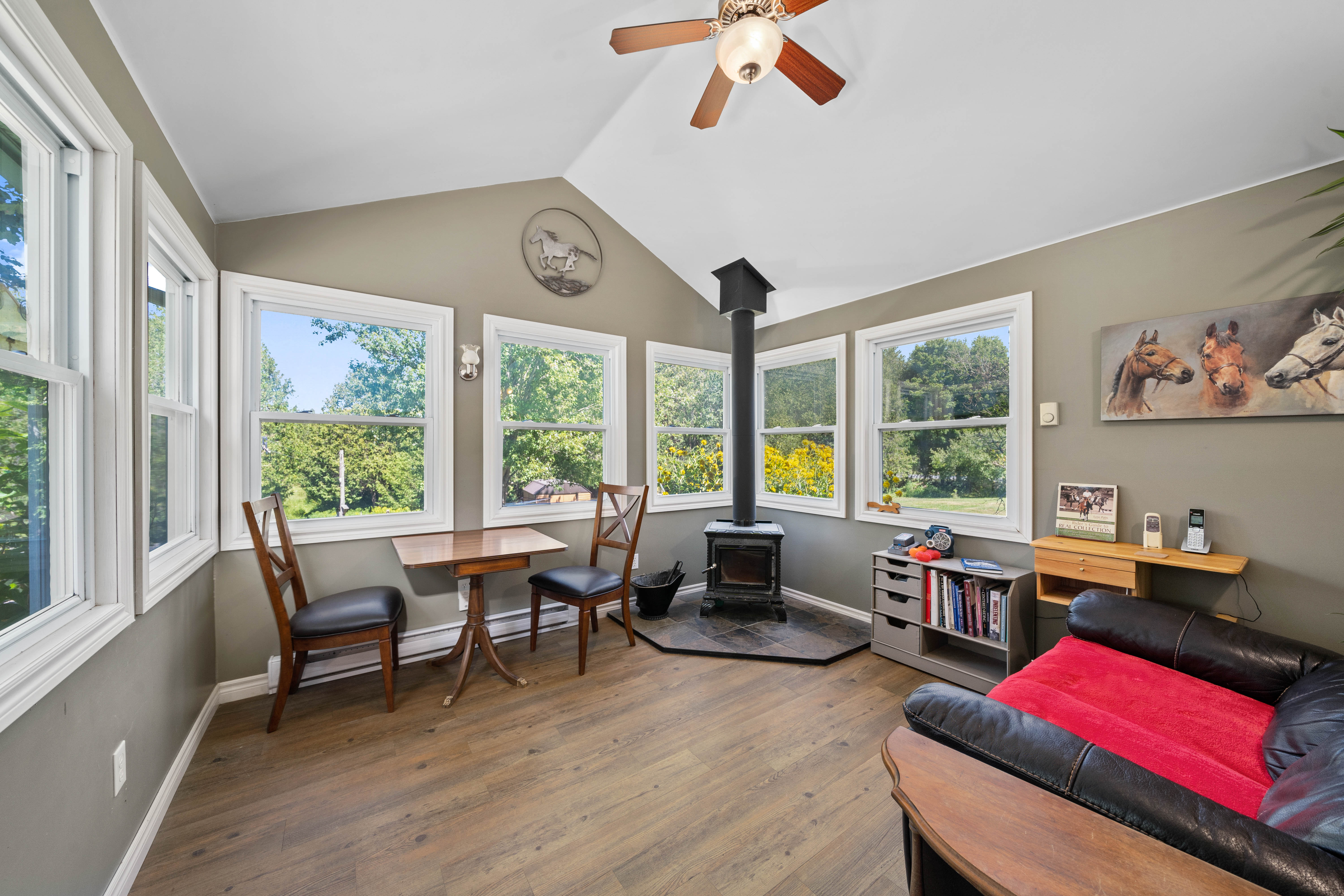 Cozy den is tucked in at the back of the house, with wood stove perfect for winter nights, with a great view of the barn and your animals, while you enjoy the heat of the fire!