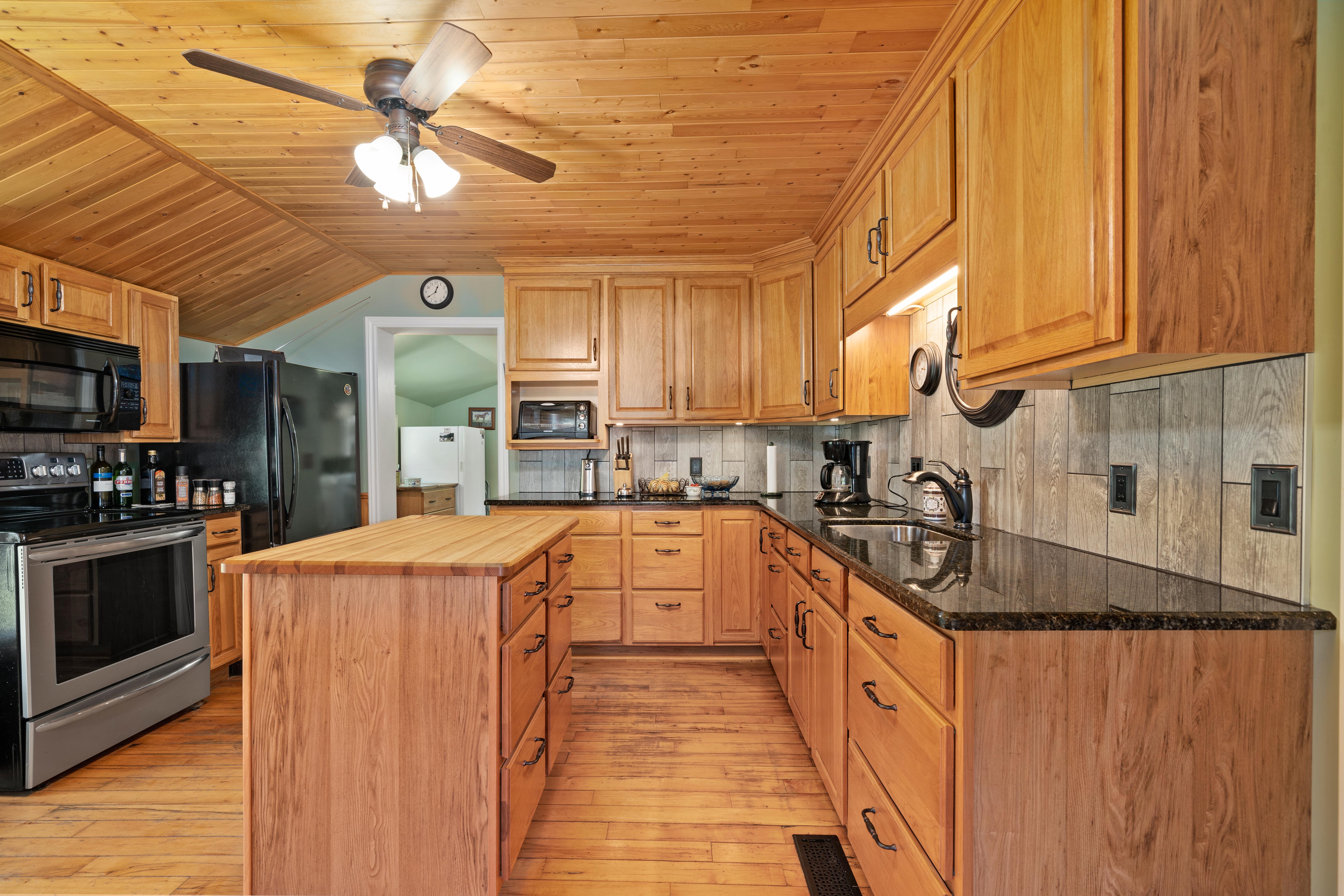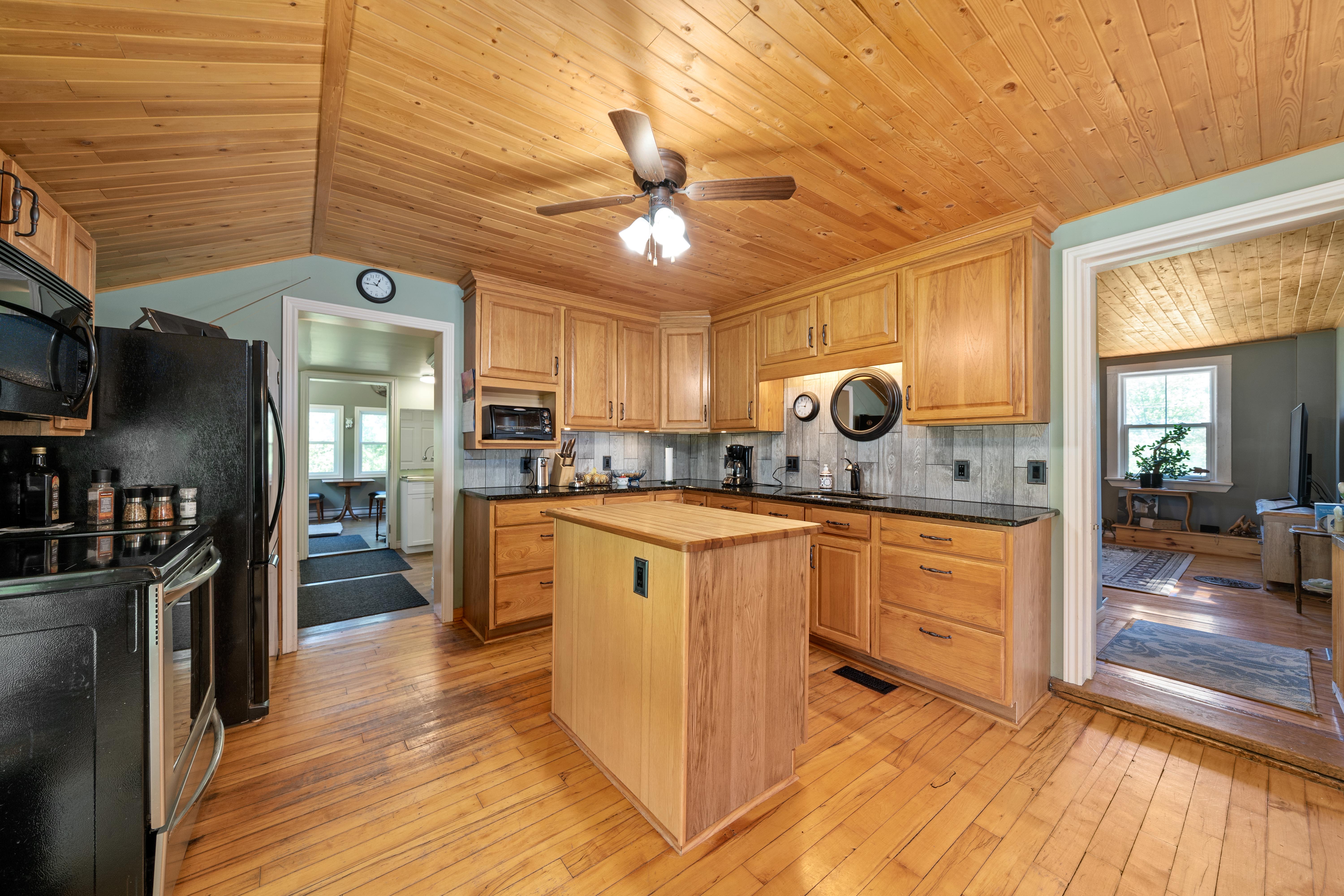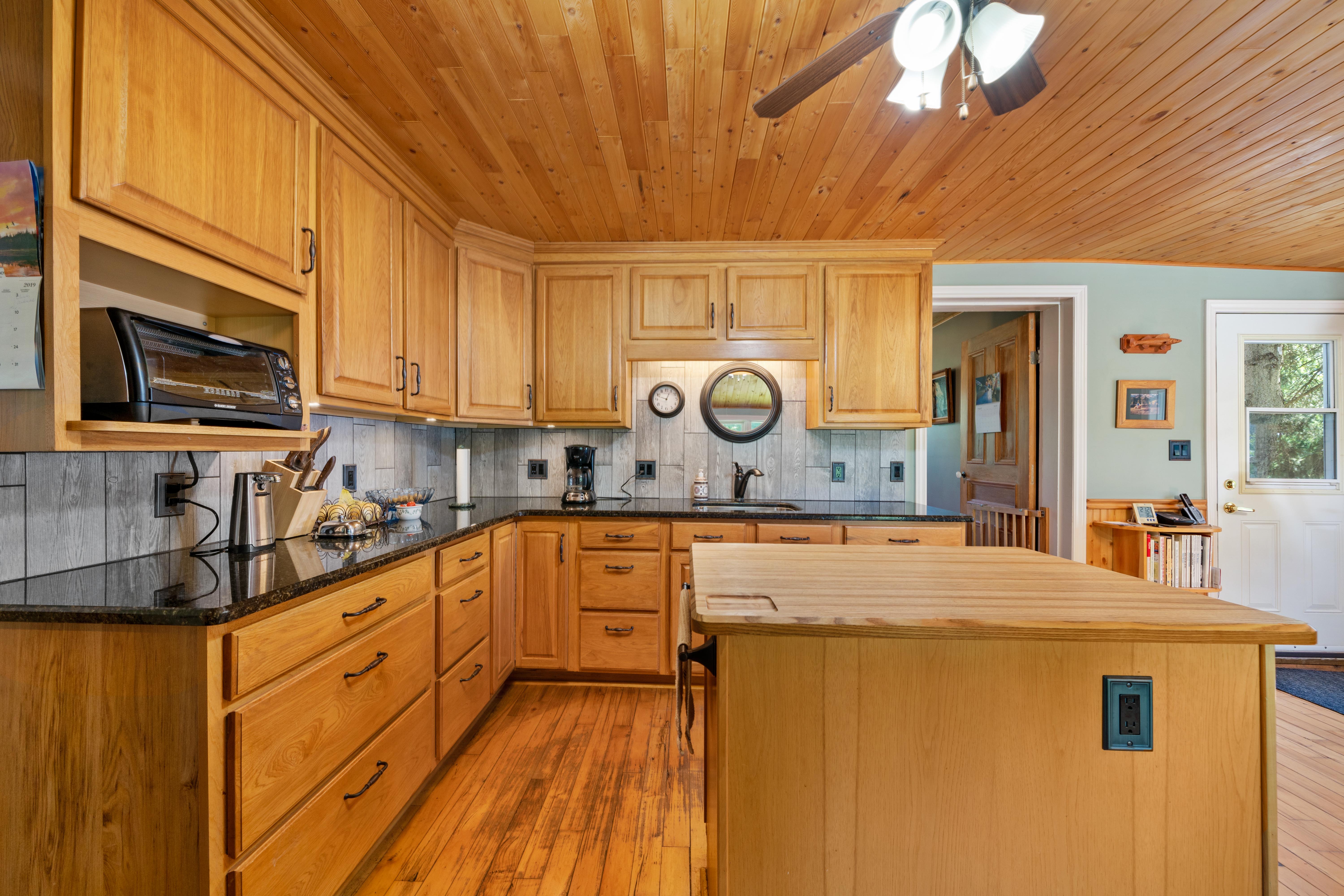 The house is perfectly quaint and cosy in every way! Great custom kitchen with granite countertops, complete with island with butcher block top.