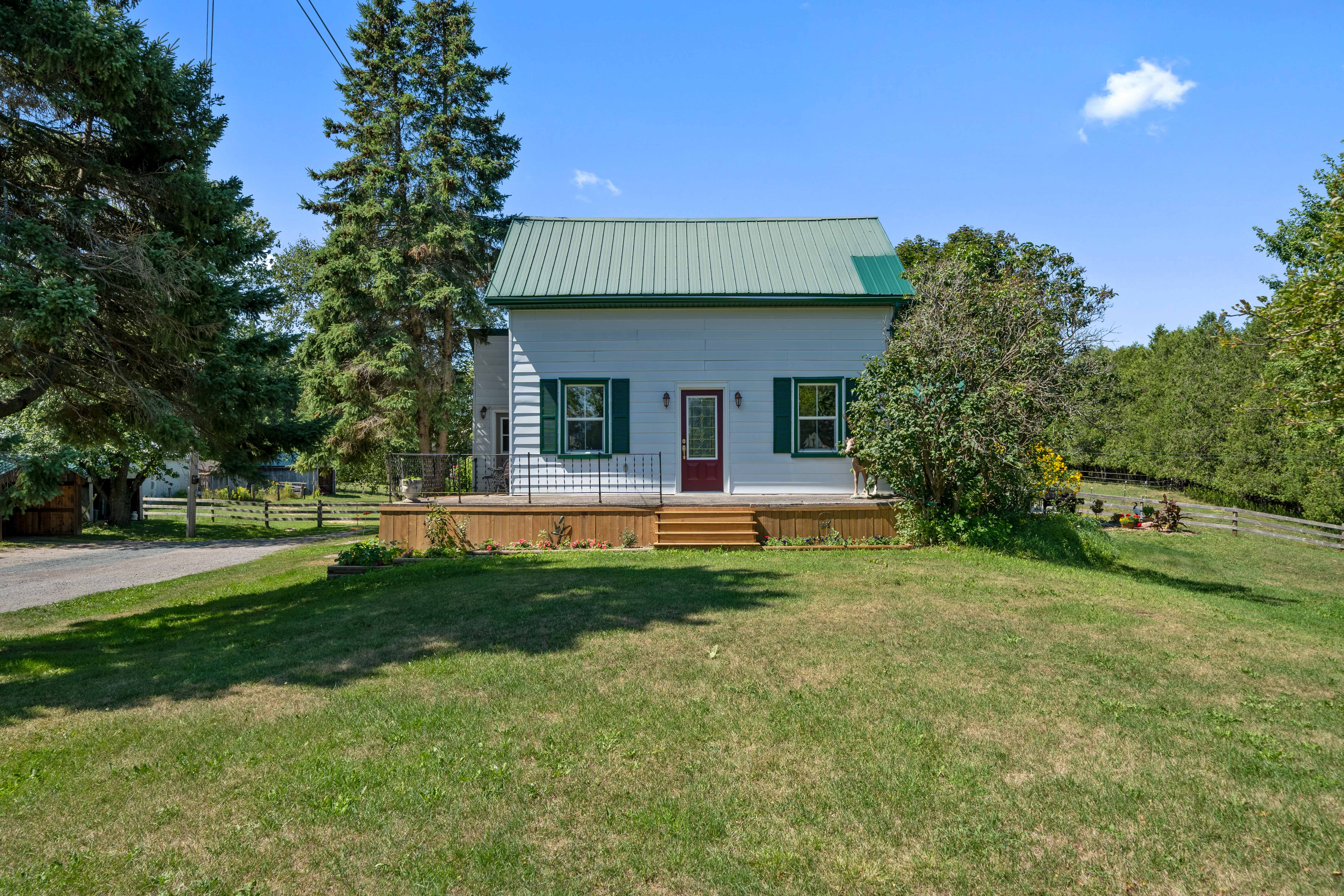 Extras on the property that you won’t want to miss- steel roof on the house, newer windows, 4 years new ground source heat, detached heated garage (20 x 24) with 60 amp service, water in the barn, newly added chicken coop, barn completely resided and new roof also has 60 amp service. 8 km of maintained riding trails on the property, perfect for horse back riding, cross country skiing, snowmobiling, ATVs, or simply walking!