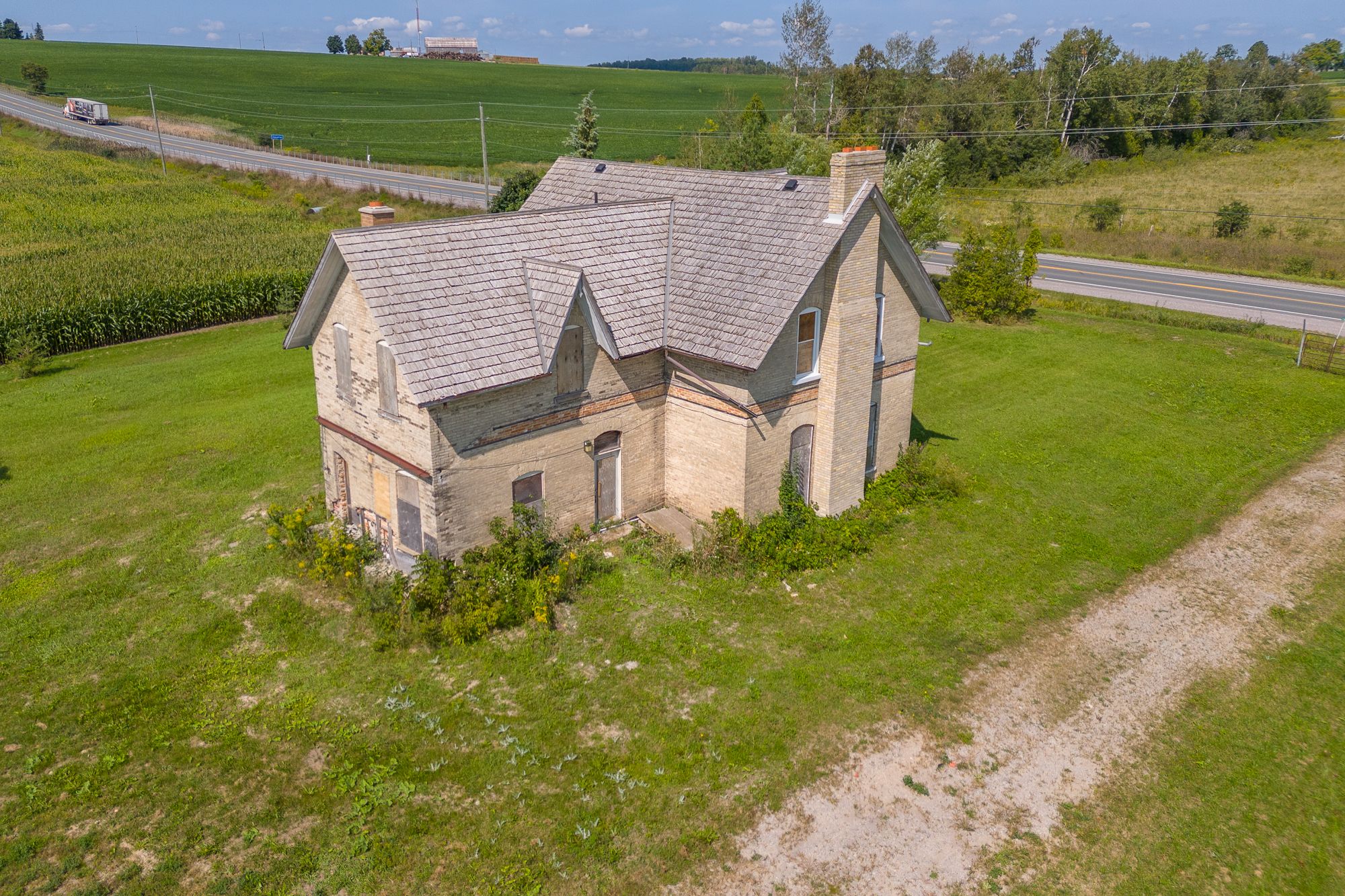 Incredible restoration opportunity. Double brick century home with so much potential to be renovated into a true showstopper. 1.83 acre lot offers opportunity for a walkout basement under a fabulous great room with panoramic views. Loads of lot space for shop or carriage house! Bring your imagination.