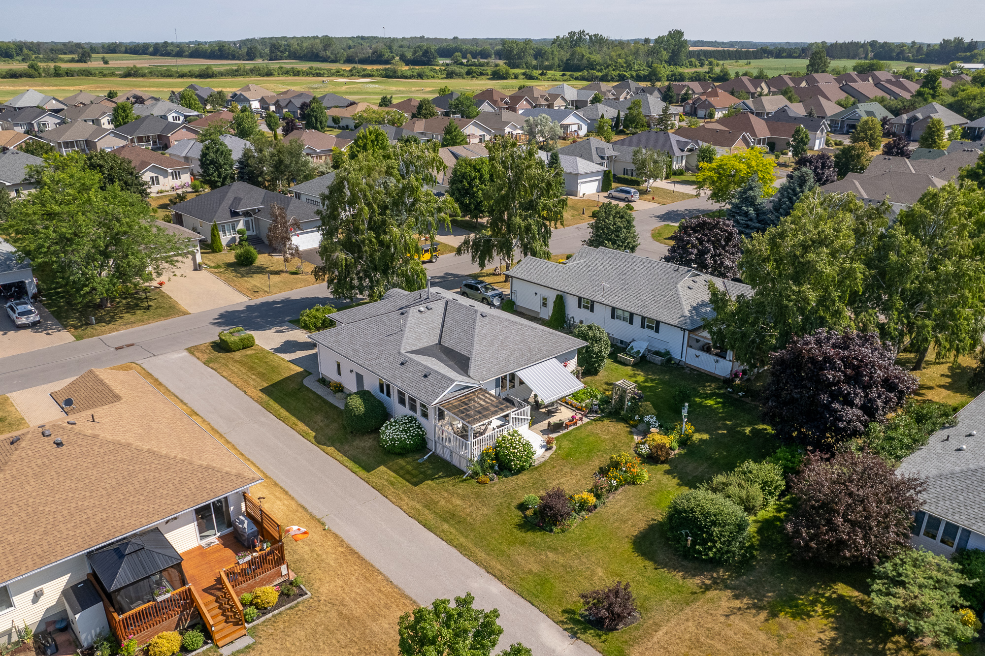 Peaceful Perfection in Prince Edward County! In the much sought after adult community of Wellington on the Lake, this original owner 2 bed 3 bath bungalow oozes pride of ownership, with many recent and thoughtful updates to make your life here easy! Bordered by the walking path, you can see Lake Ontario from your back deck, while chatting with a neighbour as they pass by. Well established gardens and immaculate landscaping with sprinkler system to keep things green and growing through the heat of the summer. Open floor plan with large principal rooms, eat in kitchen plus formal dining room, with the added bonus of a sunroom with walkout, ideal for catching a nap or just taking a break! Partially finished basement offers 2 piece bath, workshop, and open space to suit any hobbies you may have, or simply for storage. Not to be missed- 2020 installed Generac 13W Full House Generator Updates include: Roof (2015) Basement Bathroom (2016) Furnace/Central Air/ Hot Water Tank (2017) Granite Countertops (2019) Washer/Dryer (2021)
