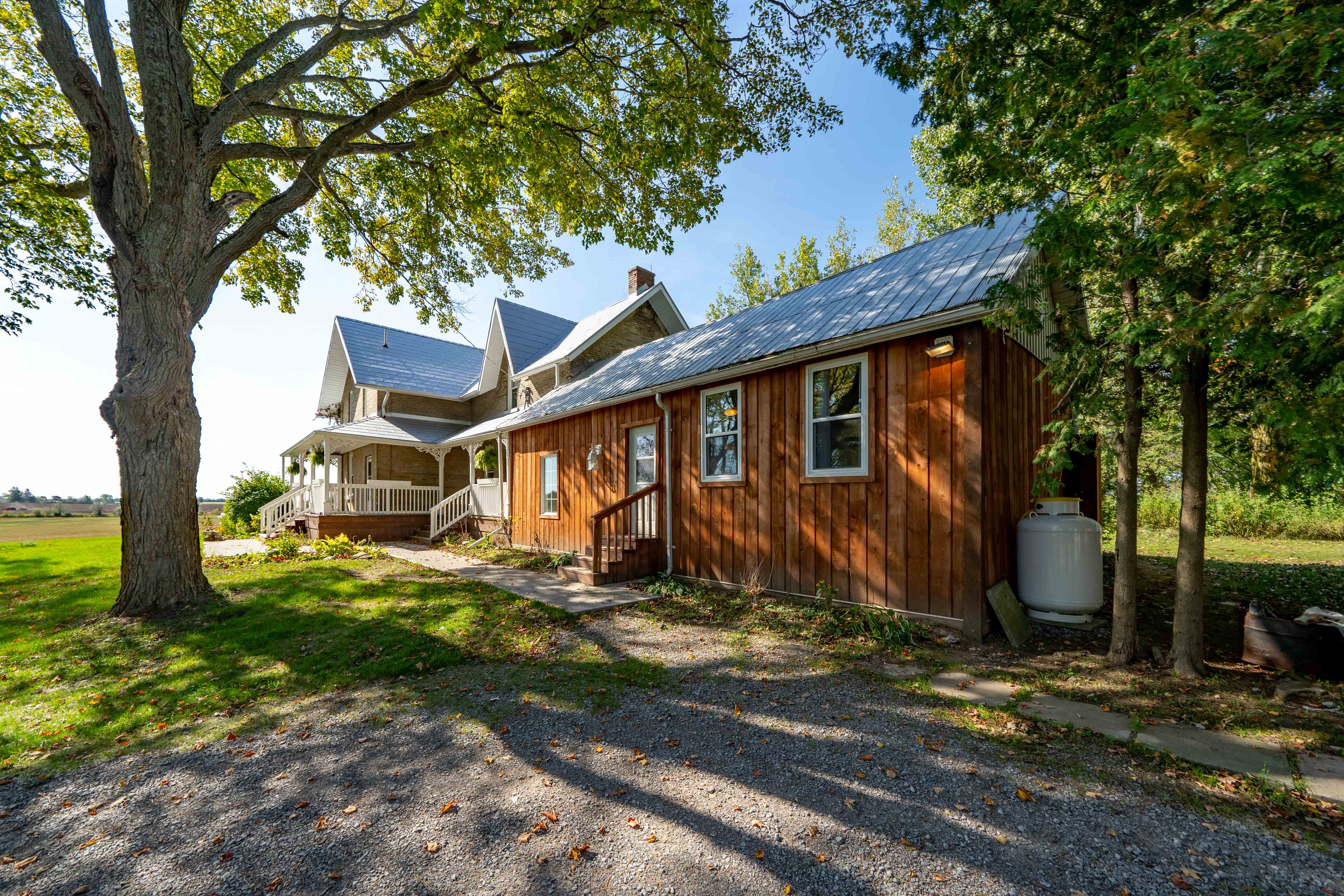 Rarely does an opportunity as unique and exciting as this come along! Just 2 km from the town limits, this classic blonde brick farmhouse is safely setback from the road, and is well appointed with a beautiful tree lined drive, leading to a private 2.48 acre lot.