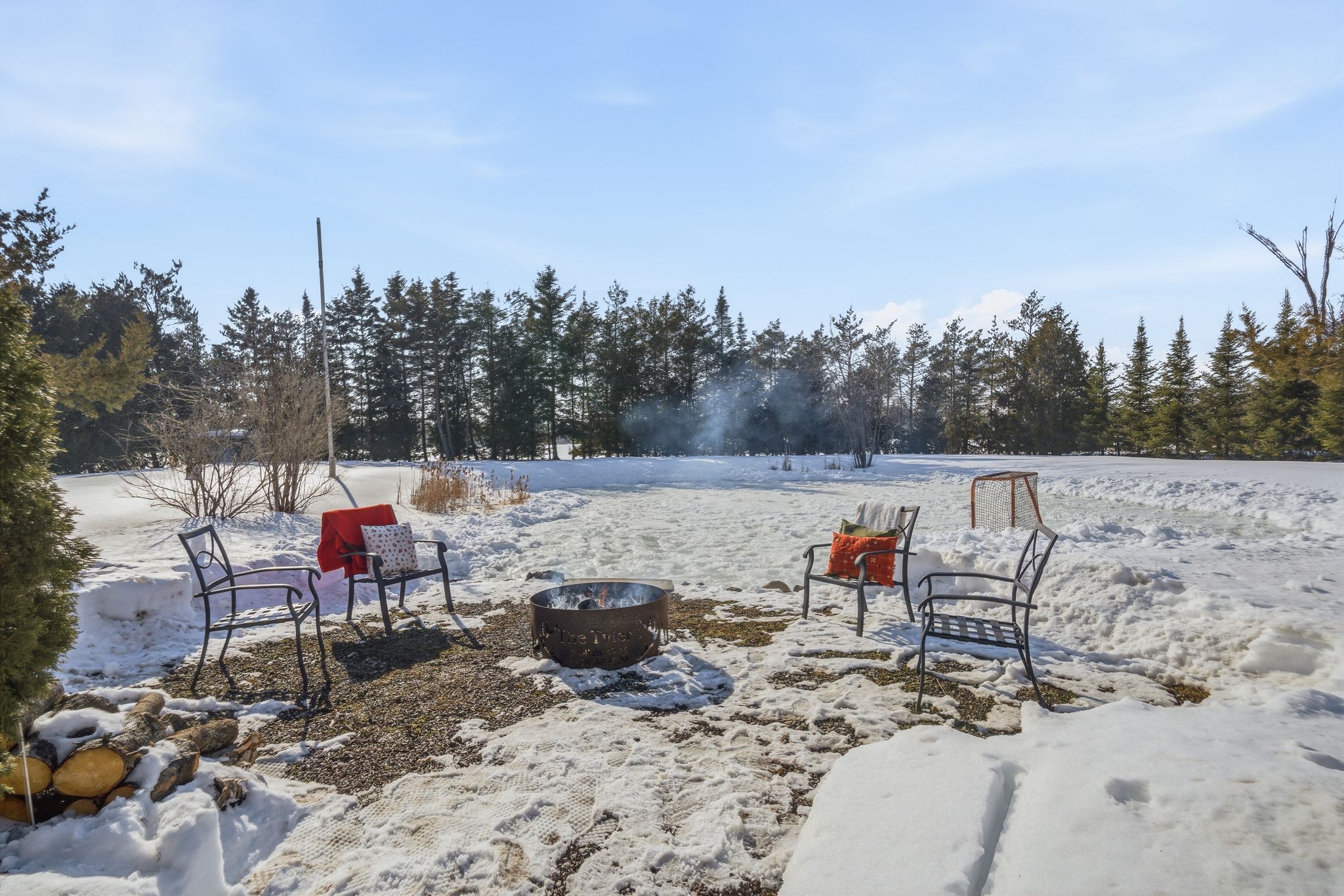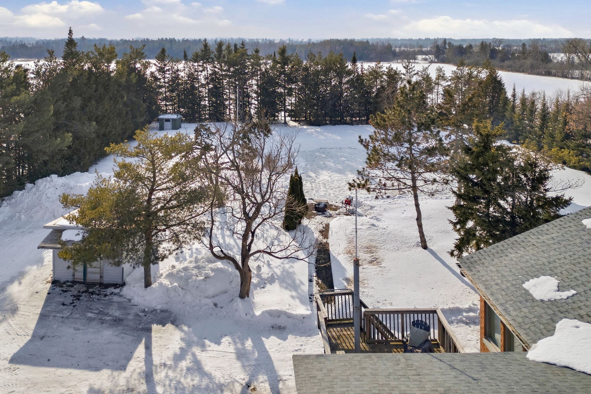 Outdoors is where this property truly shines. The impressive +/- 70-foot diameter pond (approximately 8 feet deep) is stocked with beautiful Koi fish, creating a tranquil backyard focal point in the warmer months — and transforming into your very own private pond hockey rink in the winter. It’s the ultimate four-season feature.