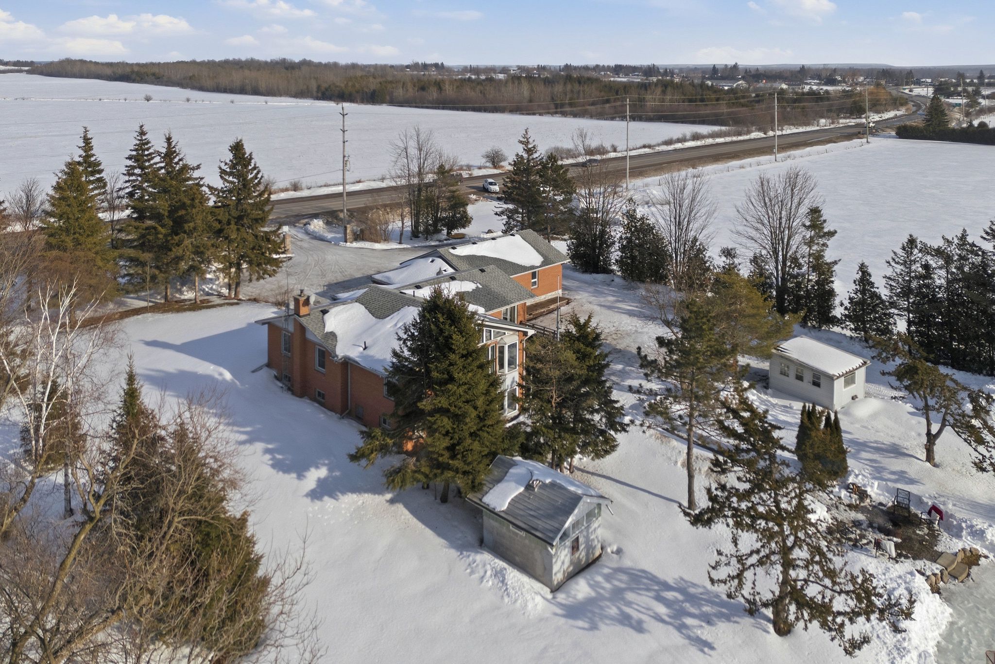 Tucked just minutes from town on a paved road, this beautifully maintained brick bungalow offers the perfect blend of rural privacy and everyday convenience. Privately set on a well-treed lot with loads of parking, this property delivers space, flexibility, and lifestyle all in one.